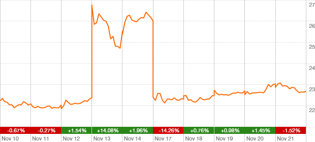 Nov. 21, 2014 close: $25.44 (U.S.)