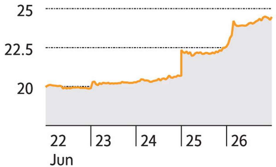 HLF (TSX), $22.87, up $1.41 or 6.6% over week