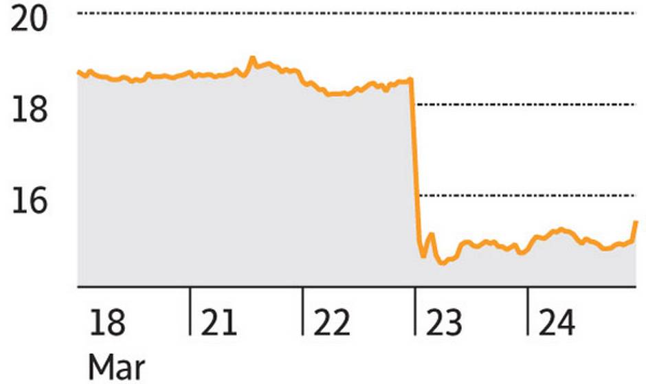 AYA (TSX), $15.45; down $3.22 or 17.2% over week