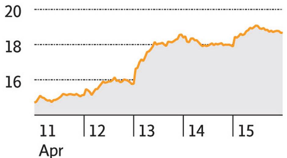 Answer: c. With the stock rebounding amid hopes that commodity markets have bottomed, long-suffering investors are finally sporting a happy clown face.