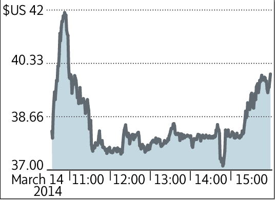March 14, 2014 close: $39.80 (U.S.)