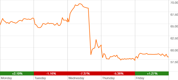 down $6.70 or 10.3% over week