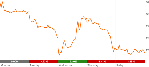 down $3.45 or 11.5% over week