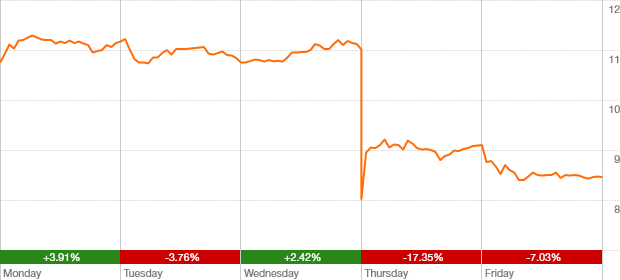 down $2.29 or 21.3% over week