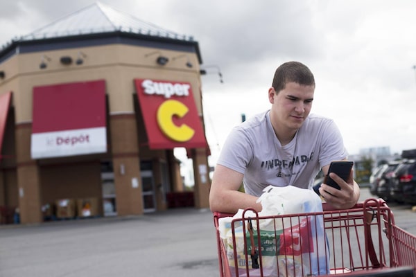 Julien Martin uses the Mylo round-up app when he shops at stores like Super C, a supermarket in Sainte-Thérèse, Que.Christinne Muschi/The Globe and Mail