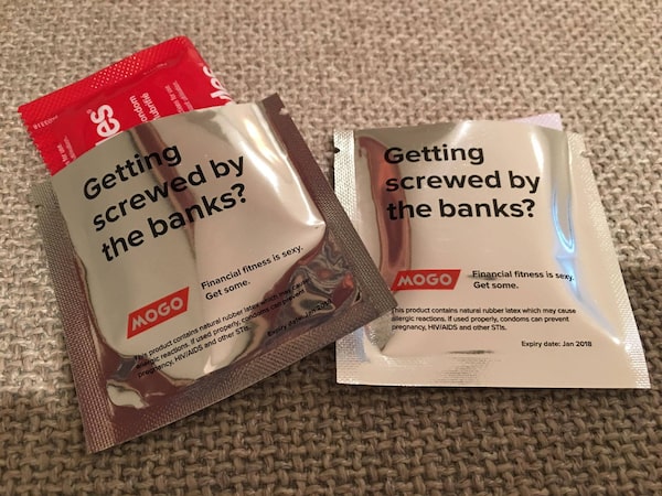 To get my fintech loan on I started my search not online, but by hanging at a place called the MogoLounge on Queen Street West in Toronto. Within minutes of lounging by a bar of iPads loaded to Mogo.ca loan applications, I was served a chilled bottled water and scored a condom wrapped in a marketing sleeve that asked: "Getting screwed by banks?"