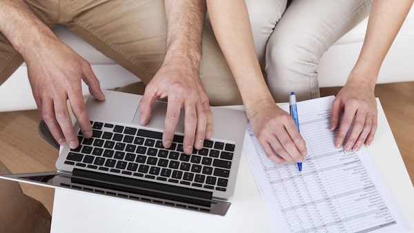 <h1>Young Couple Doing Family Finances At Laptop At Home</h1>Andrey Popov