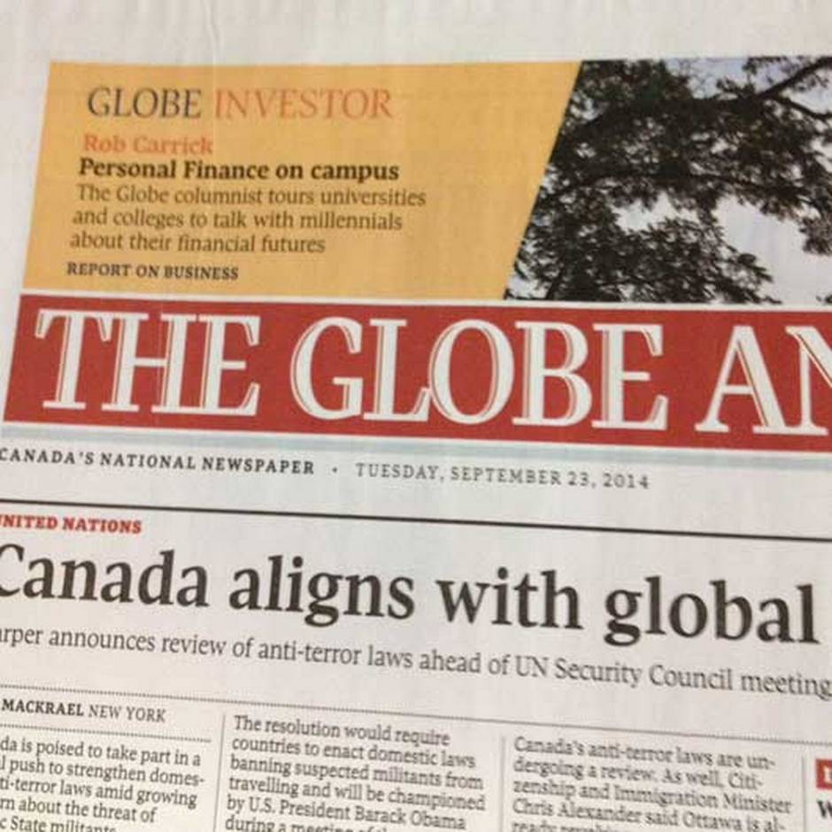 If you’d like us to come and chat with your students, contact Roma Luciw at rluciw@globeandmail.com or Rob Carrick at rcarrick@globeandmail.com. If you are a student with a money-related question, tweet it to us using the hashtag #genYmoney.