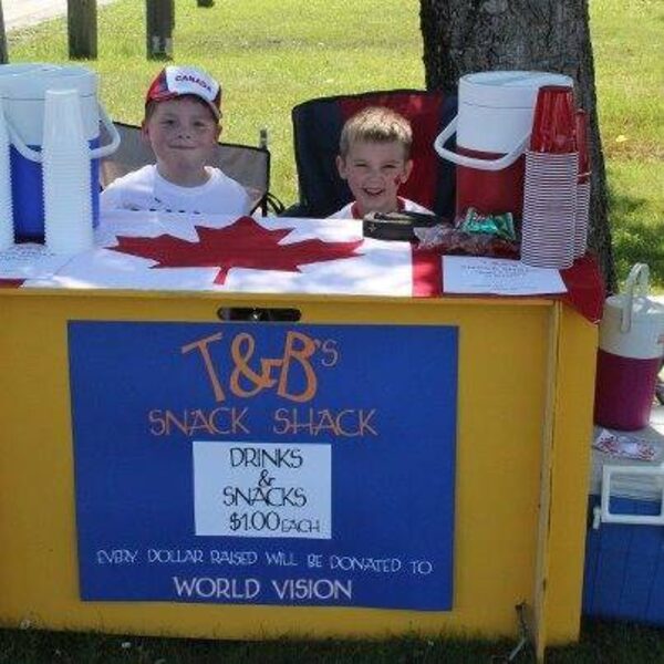 The entrepreneurs: Brody and Tyson in Red Lake, Ont. The deal: $1 a glass The sales pitch: Donating profits to World Vision. The pair set up shop near the beach on Canada Day. The take: $100