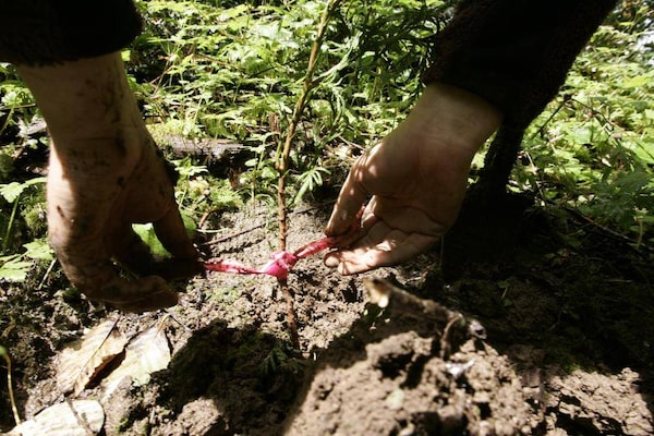 A tree is planted by a worker for Ecosystem Restoration Associates in Maple Ridge, B.C.JOHN LEHMANN/The Globe and Mail