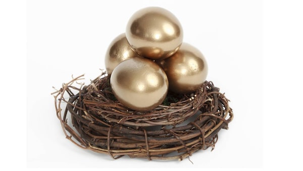 golden eggs sitting on a nest of sticksLee Feldstein