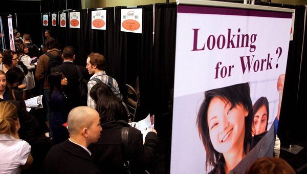 Job seekers line-up at various booths at the National Job Fair and Training Expo in the Metro Toronto Convention Centre.Fernando Morales/The Globe and Mail