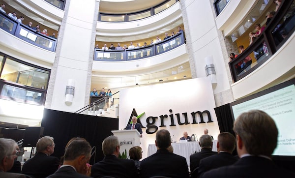 Employees and shareholders look on at Agrium’s annual meeting in Calgary in 2012.Jeff McIntosh/The Canadian Press
