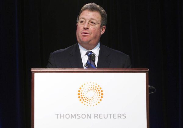 Thomson Reuters president and CEO James Smith speaks at their annual general meeting for shareholders in Toronto, May 16, 2012.MARK BLINCH/Reuters