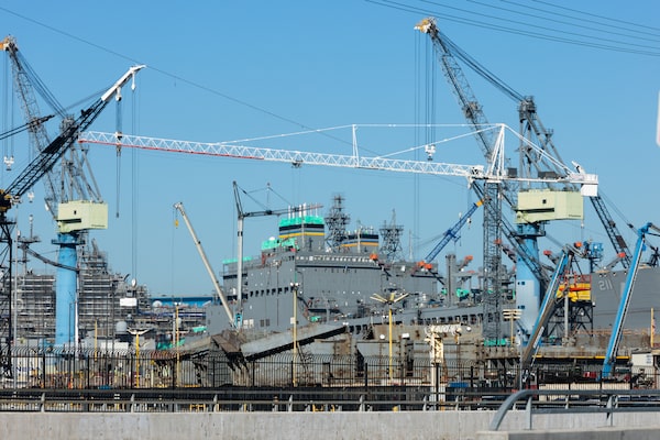 A large ship is under construction at General Dynamics in San Diego, Calif., last month.Mike Blake/Reuters