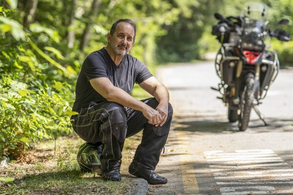 Troy Brooks, pictured with his motorbike at Belcarra Regional Park near Port Moody, B.C., has taken long road trips since retiring, and focused on hobbies such as woodworking and playing guitar.Jimmy Jeong/The Globe and Mail