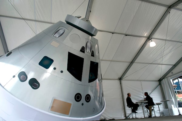 A model of the Orion capsule, which will be tasked with the mission of delivering NASA astronauts to the Moon in 2024 and to Mars at a future date. Orion is manufactured by Lockheed Martin, which is included in several space-focused ETFs. (Photo by Jason Connolly / AFP) JASON CONNOLLY/AFP/Getty ImagesJASON CONNOLLY/AFP/Getty Images