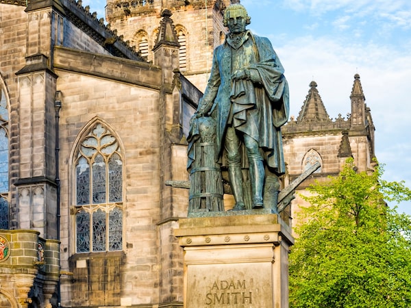 Philosopher and economist Adam Smith, whose statue is near St. Giles Cathedral in Edinburgh, Scotland, participated in an early group longevity pool.ewg3D/iStockPhoto / Getty Images