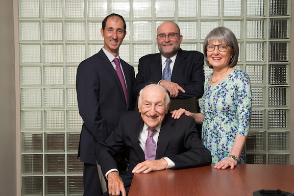Al G. Brown & Associates, a Toronto-based insurance and financial firm founded in 1943, rallied and managed its succession strategy after an unexpected death. From left: managing partner Elli Schochet, the late Al G. Brown (front) and David Wm. Brown, and former partner Golda Brown, who's now a consultant with the firm.Supplied