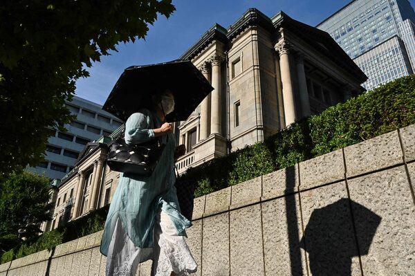 A pedestrian walks the Bank of Japan (BoJ) headquarters buildings in Tokyo on Sept. 14.RICHARD A. BROOKS/AFP/Getty Images