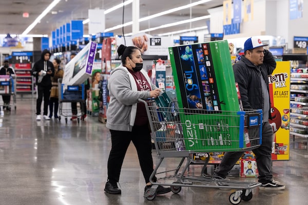 Shoppers pick up televisions at a Wal-Mart on Nov. 25, 2022 in Dunwoody, Georgia.Jessica McGowan/Getty Images