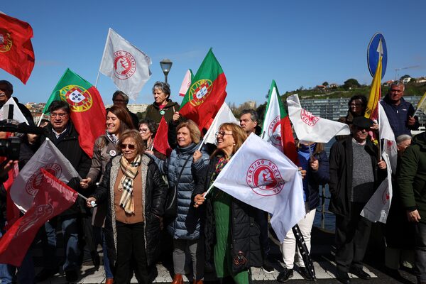 People wait for Socialist Party (PS) Secretary General Pedro Nuno Santos to arrive for a campaign rally ahead of the snap elections in Afurada, Vila Nova de Gaia, Portugal, March 4.Pedro Nunes/Reuters