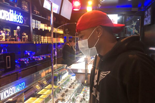 A customer who wished to remain unidentified wears a mask while shopping at The Green Cross cannabis dispensary in San Francisco, Wednesday, March 18, 2020.Haven Daley/The Associated Press