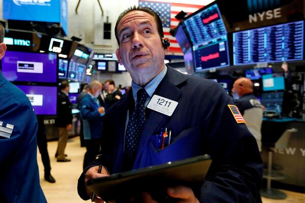 In this July 22, 2019, file photo trader Tommy Kalikas works on the floor of the New York Stock Exchange.The Associated Press