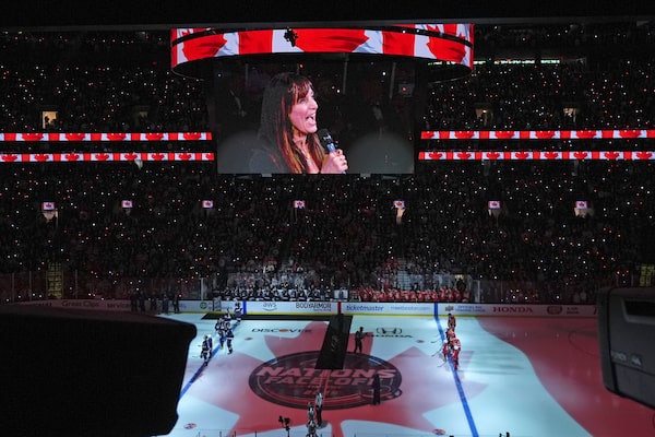 Singer Chantal Kreviazuk performs O Canada prior to the 4 Nations Face-Off championship hockey game, Thursday, Feb. 20, 2025, in Boston.Charles Krupa/The Associated Press