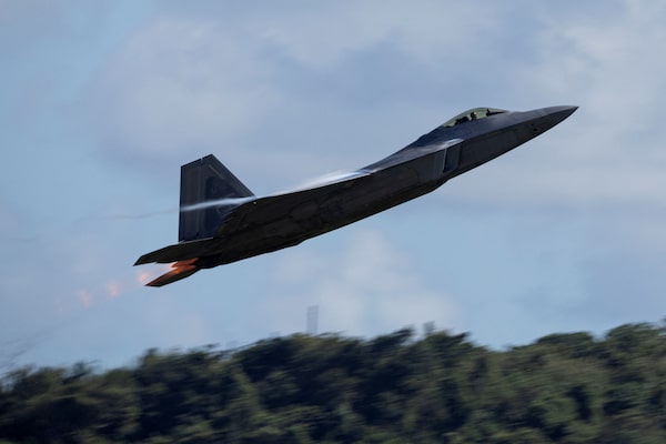 A U.S. Air Force F-22 Raptor fighter jet takes off.Ricardo Arduengo/Reuters