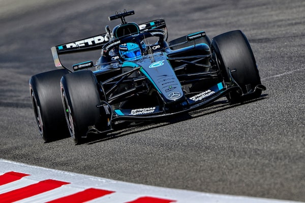 Mercedes' British driver George Russell drives on the third day of the Formula One pre-season testing at the Bahrain International Circuit in Sakhir on February 13, 2026.GIUSEPPE CACACE/AFP/Getty Images