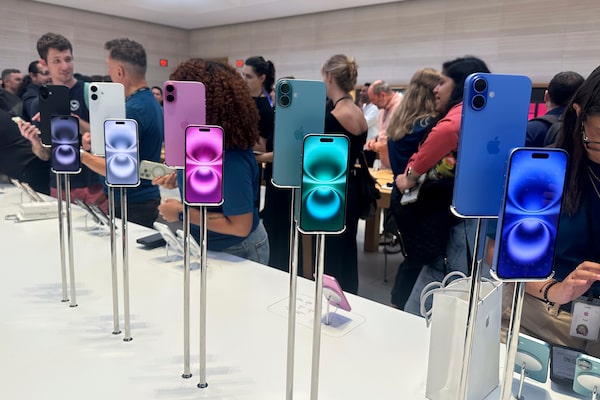 Apple has brought its suite of artificial intelligence-based tools to Canada. Customers shop at the Apple Store on 5th Ave. in New York on Friday, September 20, 2024.Ted Shaffrey/The Associated Press