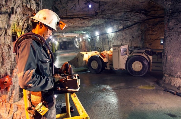 Miner operates a scoop tram by remote control to collect ore at Cameco's McArthur River operationHandout