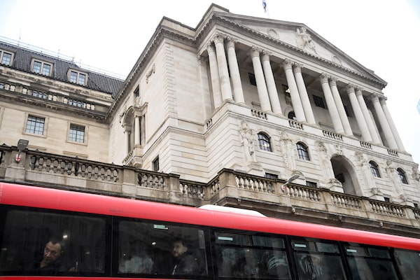 A London bus passes by the Bank of England building, in London on Nov. 3, 2022.TOBY MELVILLE/Reuters