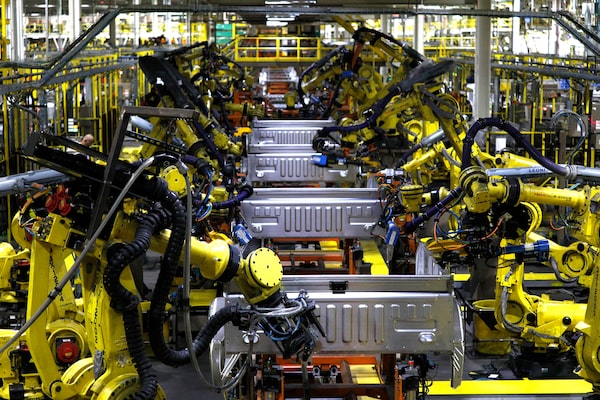 Ford F150 trucks go through robots on the assembly line at the Ford Dearborn Truck Plant on Sept. 27, 2018 in Dearborn, Michigan.Bill Pugliano/Getty Images