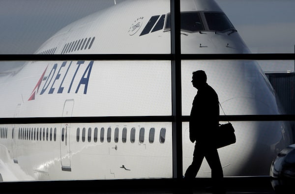 A passenger walks past a Delta Airlines 747 aircraft in McNamara Terminal at Detroit Metropolitan Wayne County Airport in Romulus, Mich. on Jan. 21, 2010.Paul Sancya/The Associated Press
