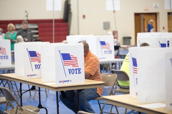 A voter fills out their ballot at Bedford High School during the New Hampshire Primary on Sept. 13, 2022 in Bedford, New Hampshire.SCOTT EISEN/Getty Images