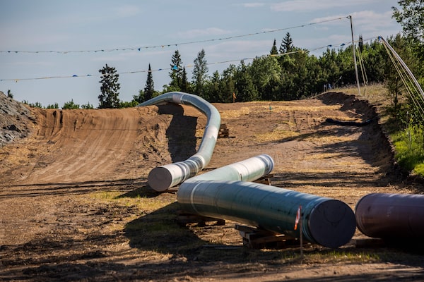 Sections of the Enbridge Line 3 pipeline are seen on the construction site on the White Earth Nation Reservation near Wauburn, Minnesota, on June 5, 2021.KEREM YUCEL/Getty Images