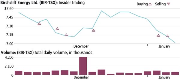 It has been a tough start to the year for Canadian natural gas-focused producers with most falling in the first week of trading. Birchcliff Energy Ltd. (BIR-T) is down 6.0 per cent in the first four trading days this year and is down 9.1 per cent over the past month. Over the past month, six insiders have spent a total of $256,569 buying shares in the public market. The biggest buyer was CFO Bruno Geremia, who bought 9,000 shares between Dec. 12 and Jan. 5 at an average price of $7.30.