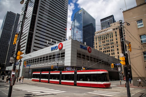 A streetcar passes the Bank of Montreal in the financial district in Toronto, June 24, 2020.CARLOS OSORIO/Reuters