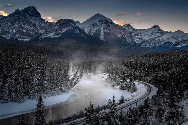 A view of the frozen Bow River and the Canadian Pacific Railway at Banff National park near Lake Louise, Alberta, on Dec. 6, 2013.JOE KLAMAR/AFP/Getty Images