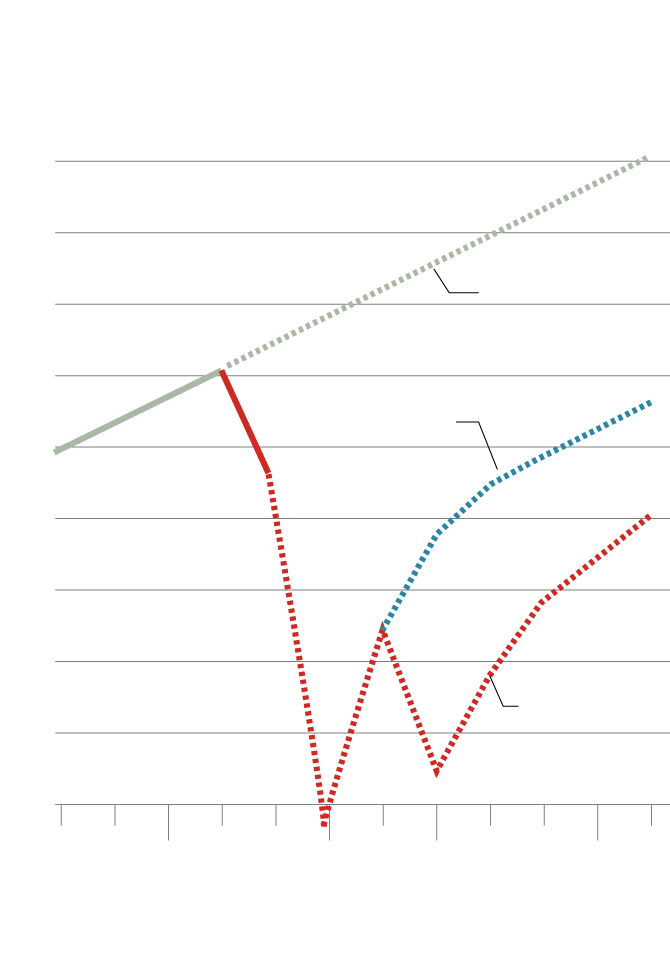 a collapse in output followed by a slow recovery