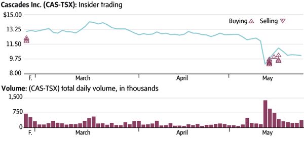Cascades Inc. CAS-T stock shed nearly 23 per cent after the packaging and tissue products company released first-quarter results on May 12. The company reported a loss of 15 cents per share as inflationary pressures squeezed margins. However, insiders reached for their wallets, not their tissue boxes after the stock tumbled. From May 13 to May 17, five insiders bought a total of 92,900 common shares at an average price of $9.84. The buying was led by executive chairman of the board Alain Lemaire, who picked up 62,000 common shares on May 13.