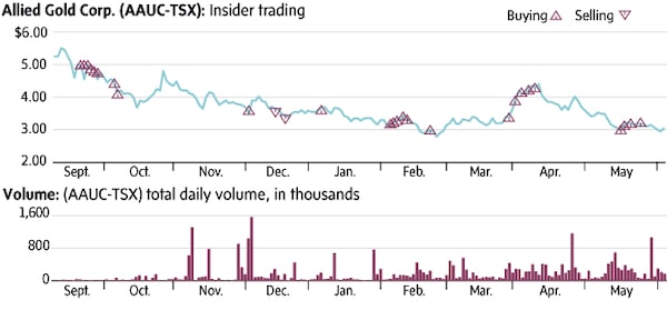 Africa-focused Allied Gold (AAUC-T) went public on Sept. 11, 2023 and is led by CEO Peter Marrone, who is the former Executive Chairman of Yamana Gold. Allied Gold has ownership in three operating mines plus the Kurmuk project in Ethiopia which the company hopes to bring into production in 2026. Since Sept. 11, four insiders have spent a total of almost $5-million buying shares in the public market. The 1,423,347 shares were purchased at an average price of $3.49. In December, a director sold 750,000 shares at $3.57.