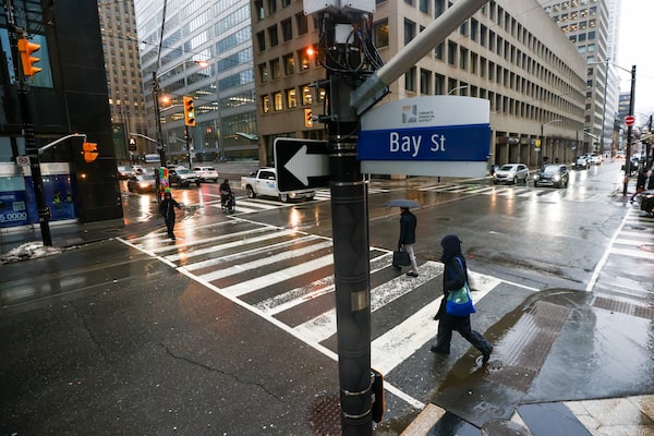Bay St. in Toronto's Financial District on Jan. 6. Companies in the S&P/TSX Composite Index have increased profit margins to 15.6 per cent, from 11.6 per cent six years prior, according to FactSet.Cole Burston/The Globe and Mail