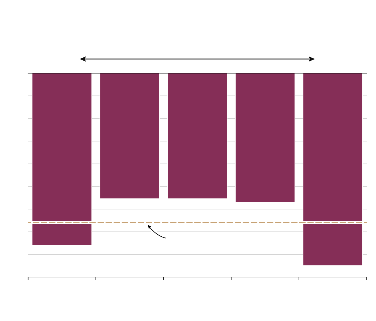 The following chart divides S&P/TSX Composite stocks into quintiles, based on analysts’