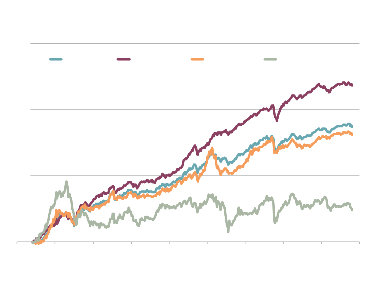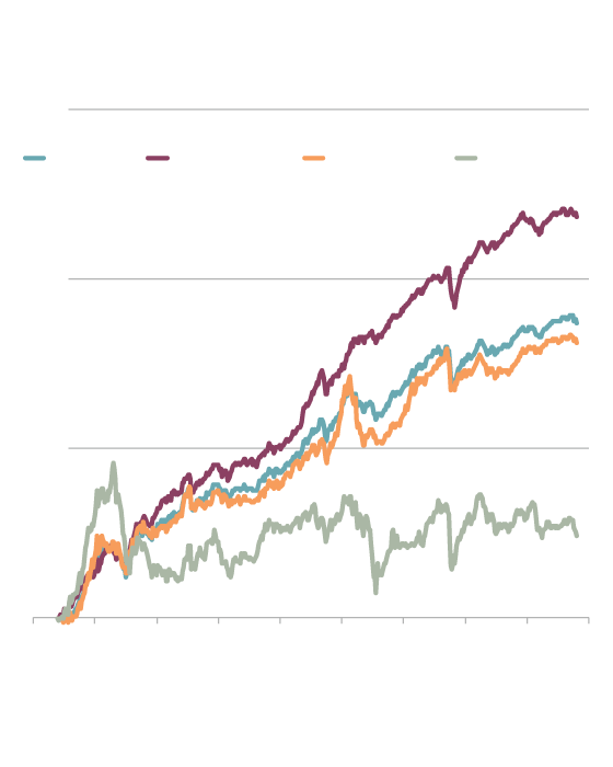 The high-yield portfolio fared well when the internet bubble burst and Nortel crashed. You can see the impact of the Nortel-led decline in the market’s returns starting in the summer of 2000. But the high-yield portfolio was relatively unfazed because Nortel was in the low-yield group.