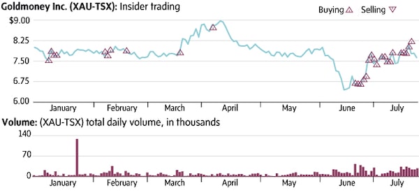 Goldmoney XAU-T is focused on trading, custody, and storage of precious metals for clients, and has exposure to jewellery manufacturing. In 2023, it began to invest in the U.K. property market with a focus on generating long-term income streams. So far in 2024, CEO Roy Sebag has spent just over $2.43 million buying shares in the public market. He now holds almost 3.92 million shares representing about 30 per cent of all shares outstanding. During 2024, Goldmoney has repurchased 403,100 shares at an average price of $7.94 (not shown on chart).