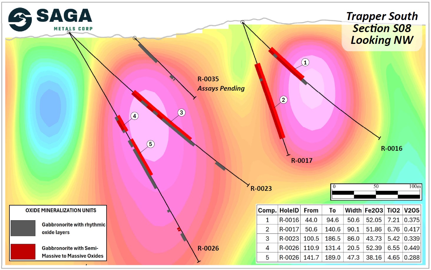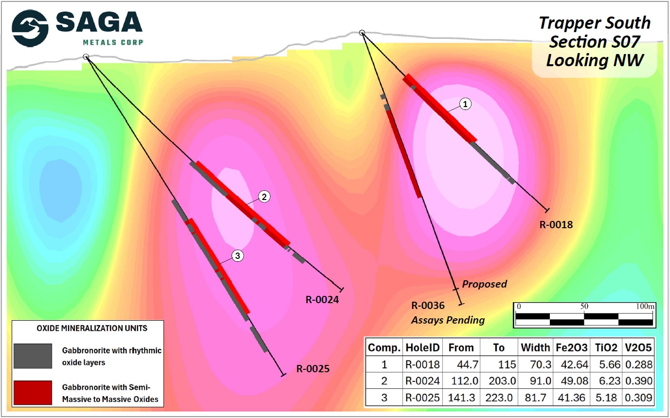 SAGA Metals Reports Assays from R-0024 to R-0026 with Intercepts Including 54.20% Fe2O3, 7.07% TiO2, 0.443% V2O5 from 2026 Drilling at Trapper South, Radar Critical Minerals Project in Labrador