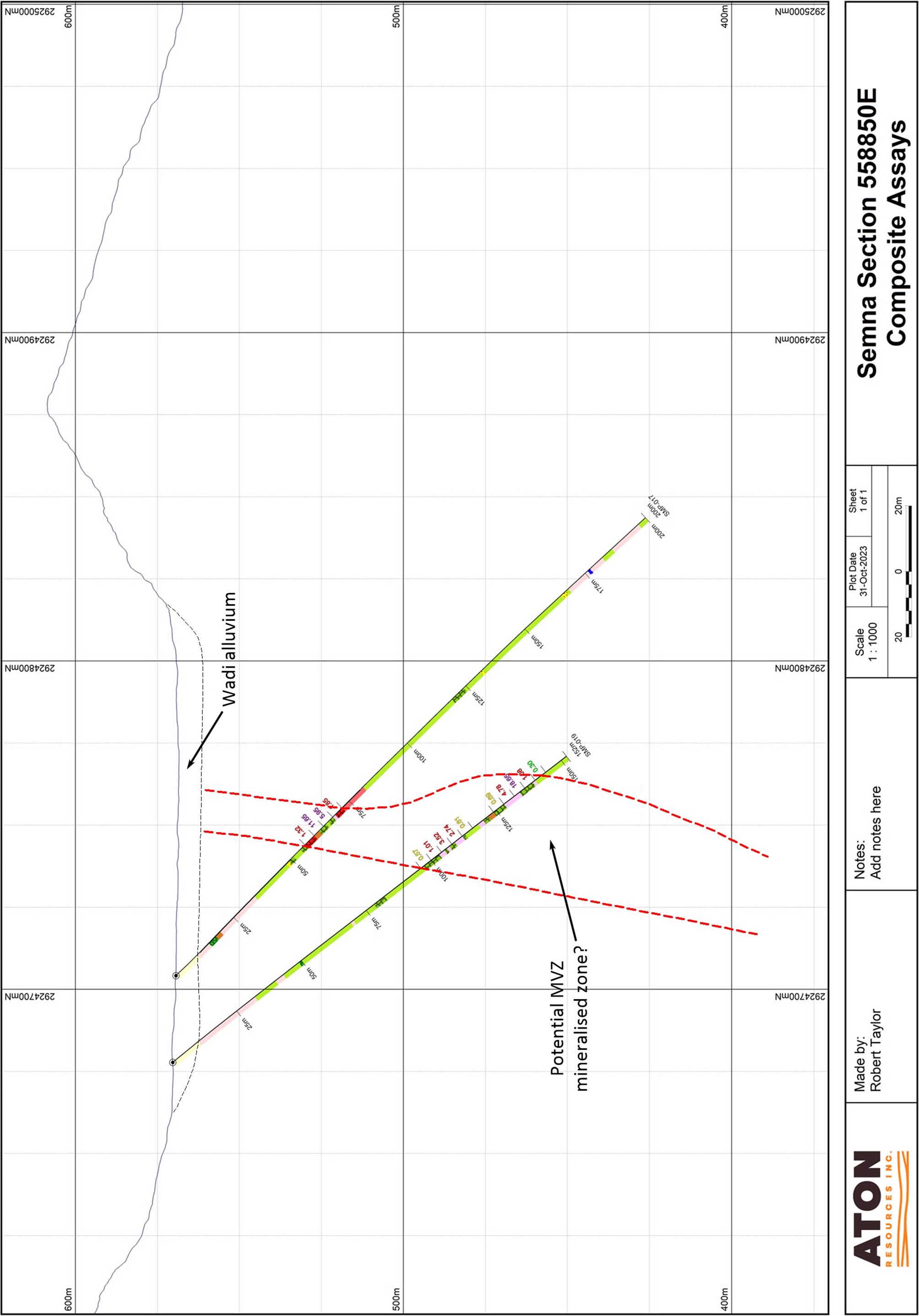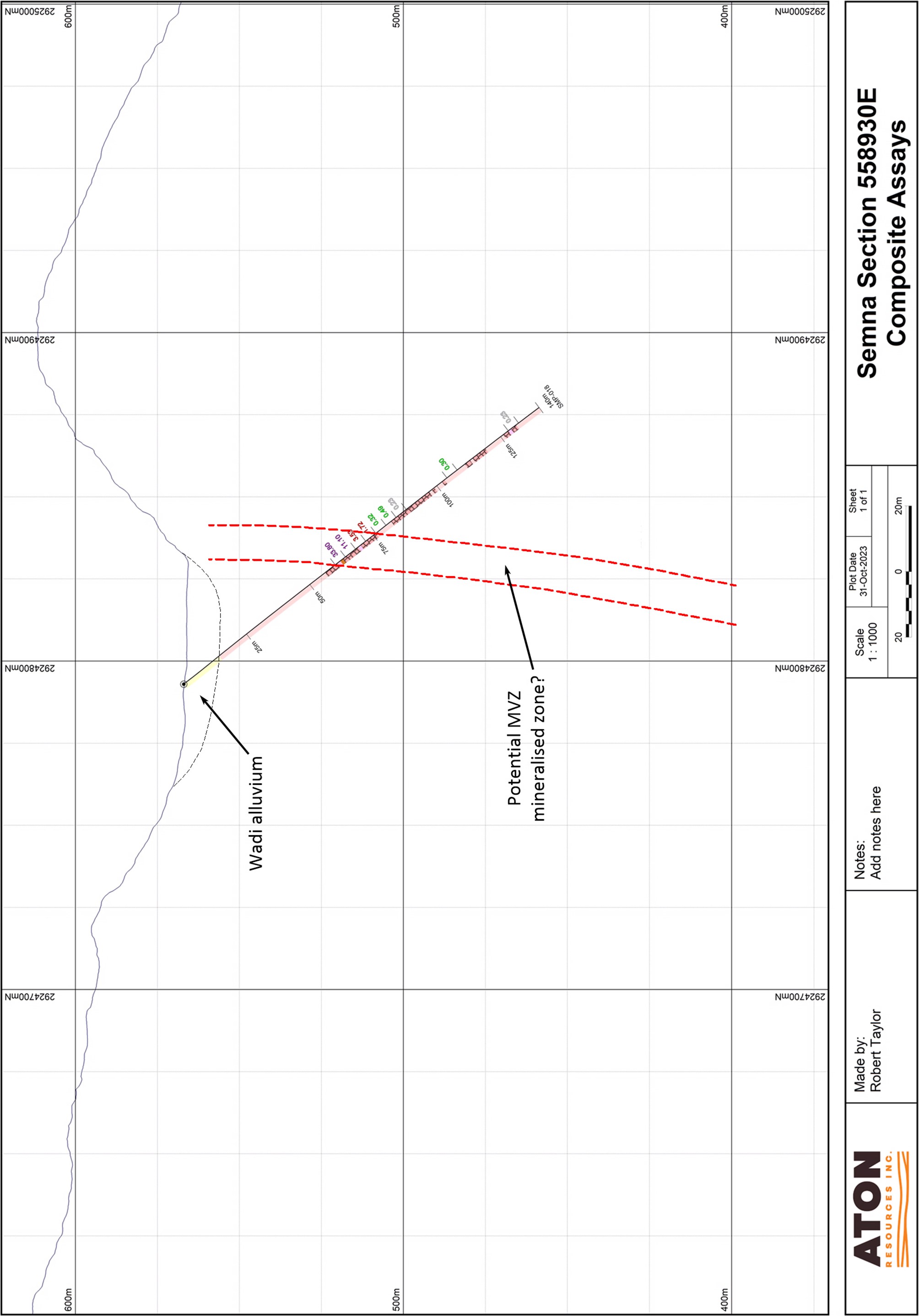 VANCOUVER, BC / ACCESSWIRE / November 7, 2023 / Aton Resources Inc. (TSXV:AAN) ("Aton" or the "Company") is pleased to update investors on the latest results from the recent reverse circulation percussion ("RC") drilling at the Semna prospect, located within its 100% owned Abu Marawat Concession ("Abu Marawat" or the "Concession"), in the Eastern Desert of Egypt.